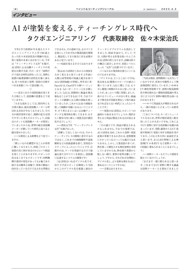 佐々木社長 インタビュー2025 コーティングジャーナル